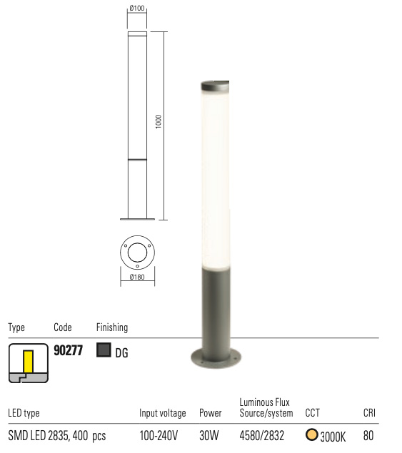 Pali per esterni equipaggiati con LED SMD e driver integrato.